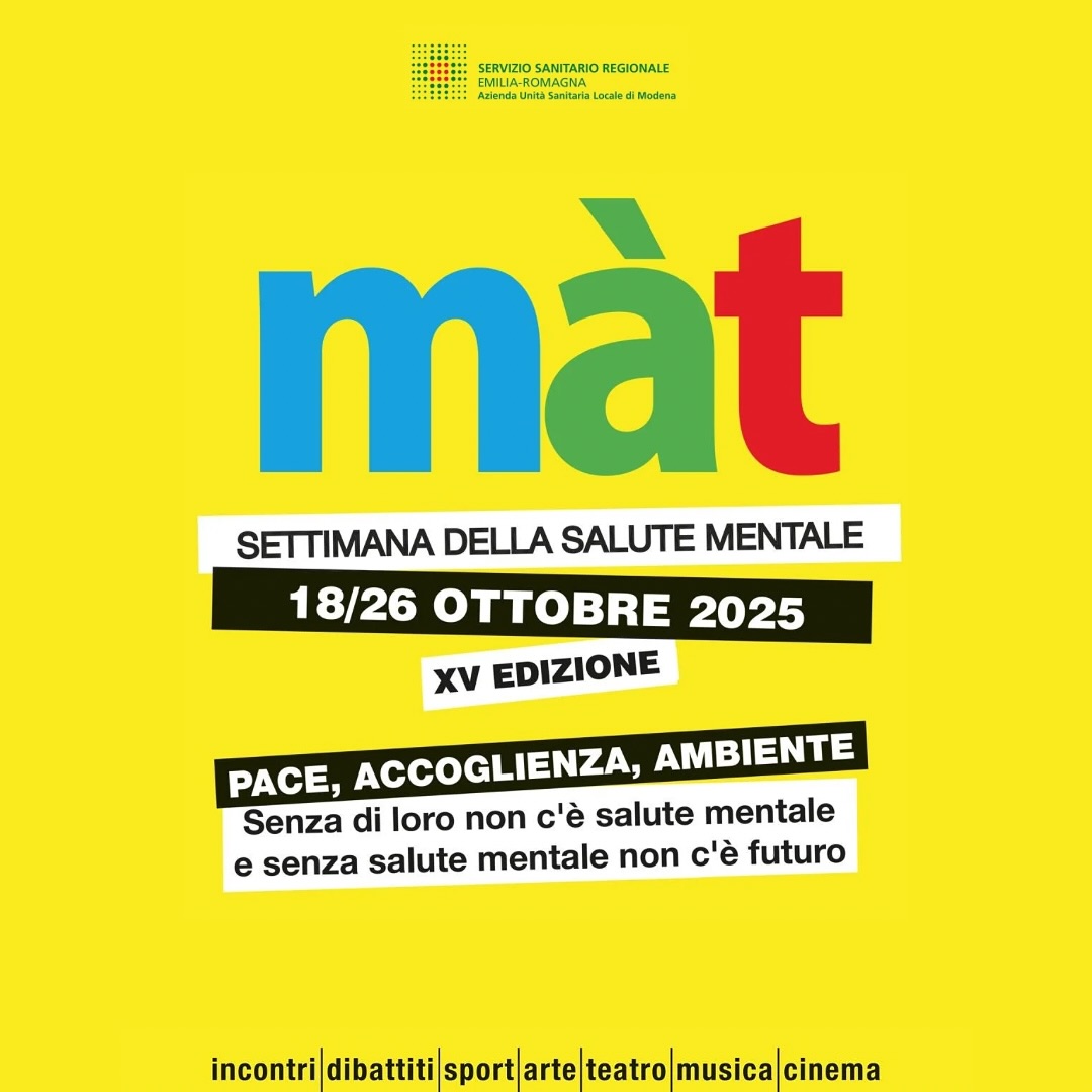 Anche quest’anno ospiteremo nella sede Coopattiva di Modena una delle tappe di Màt – Settimana della Salute Mentale: il festival che dal 18 al 26 di ottobre propone incontri, dibattiti e testimonianze per parlare insieme di salute mentale, benessere e comunità.